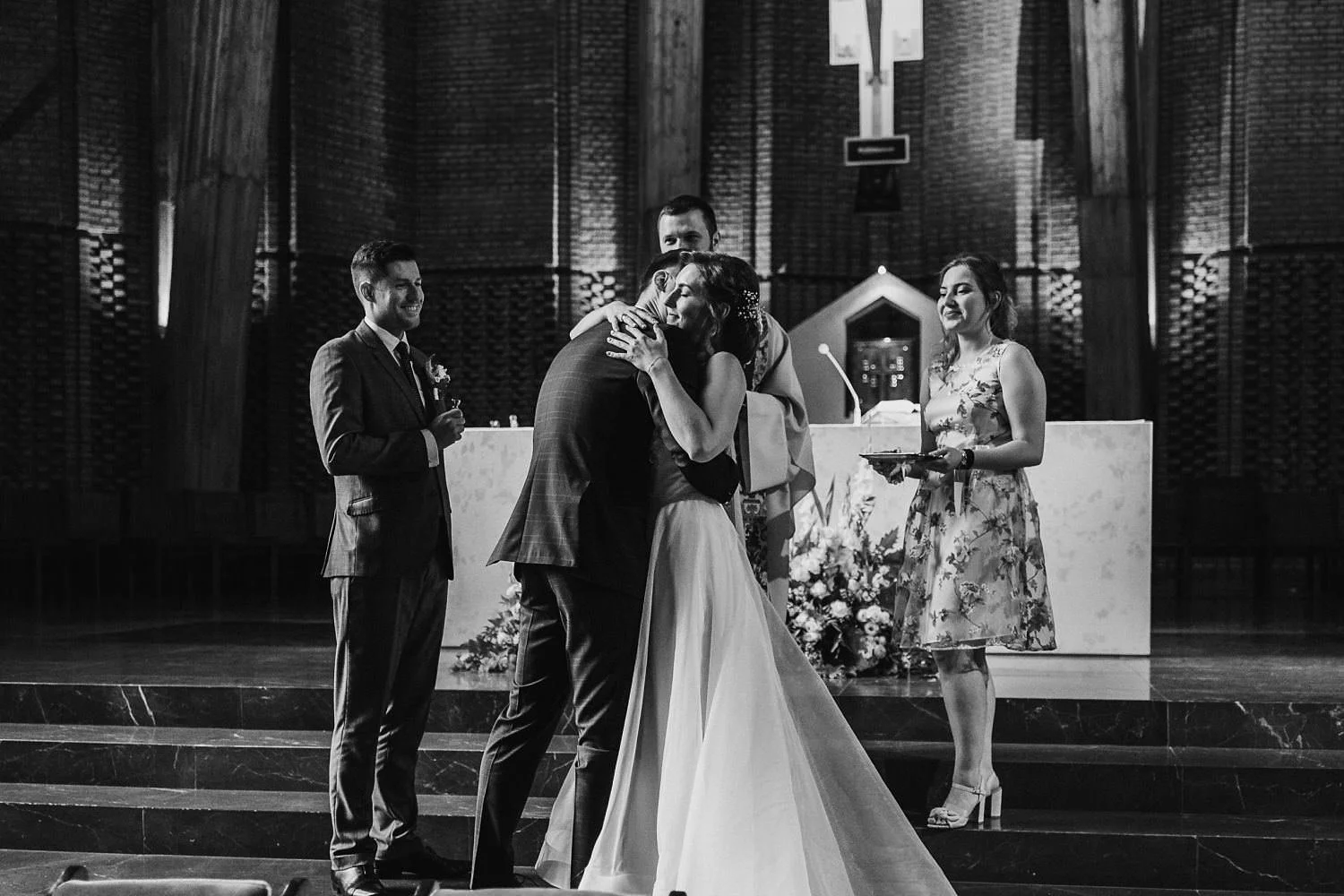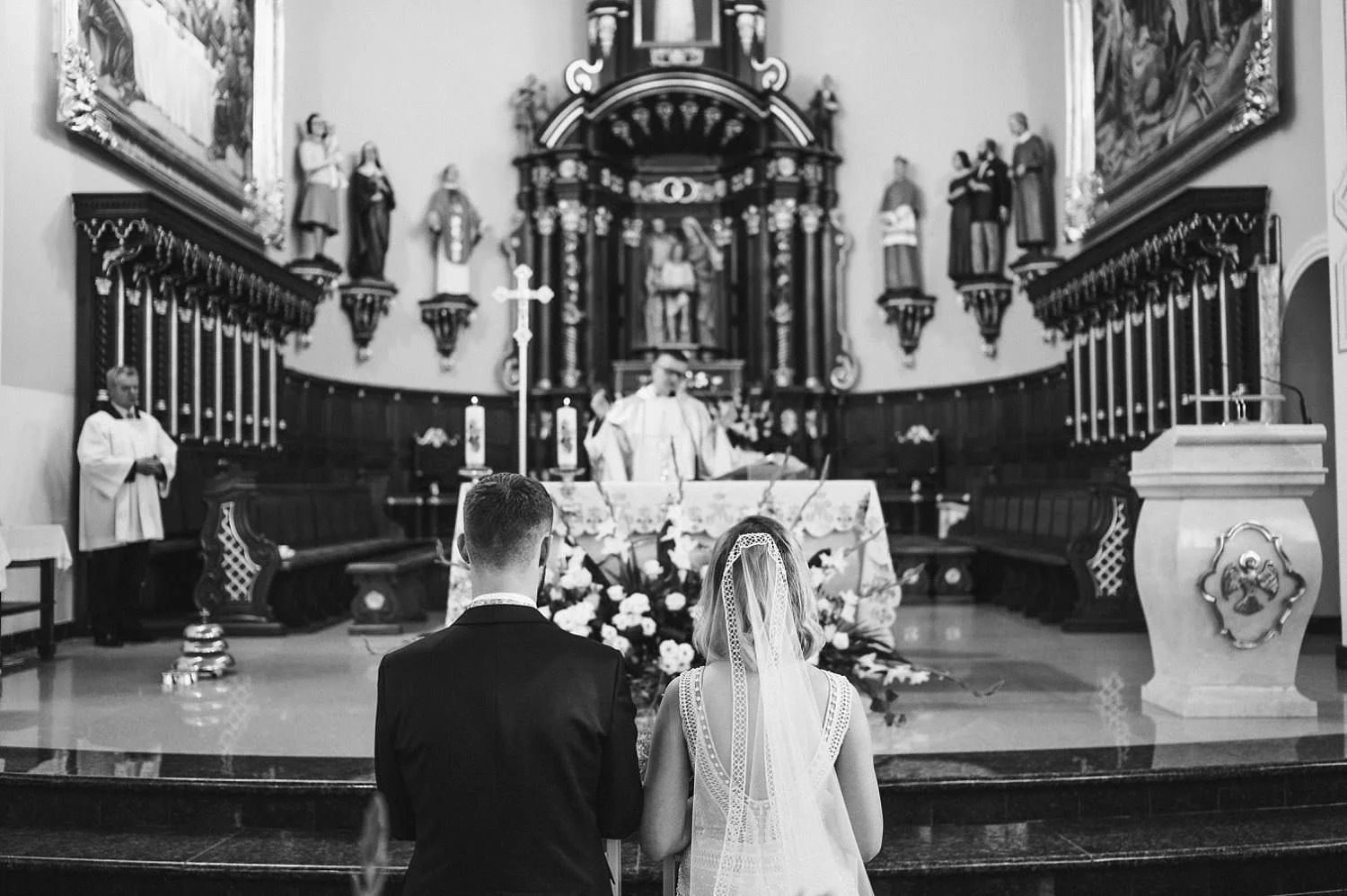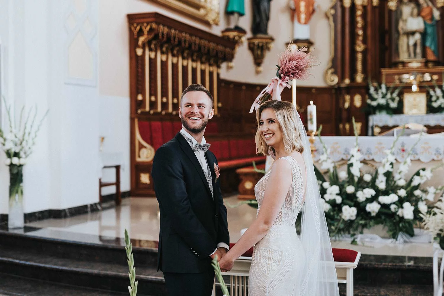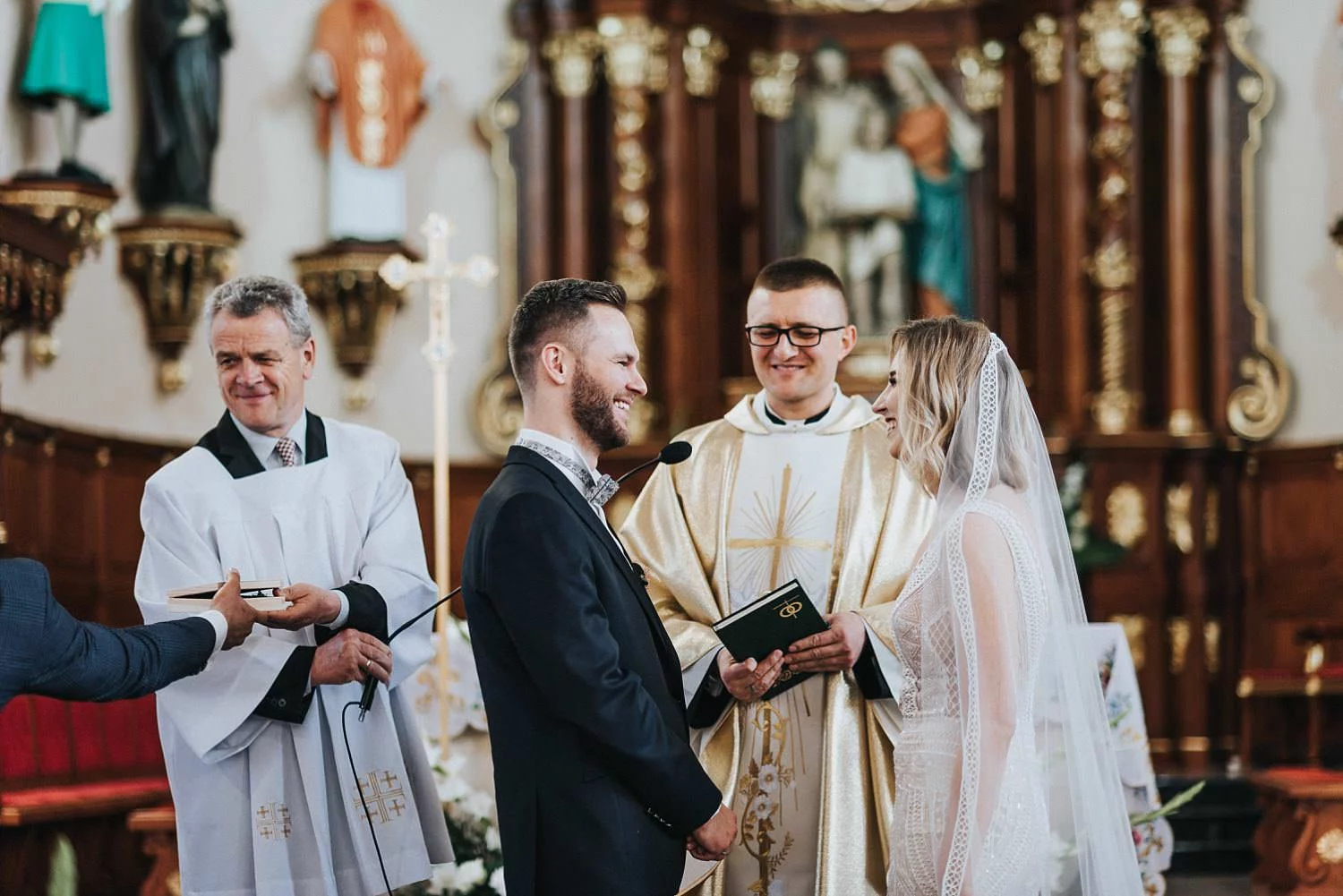Ceremonia w kościele była także prawdziwą huśtawką emocjonalną. Łzy Pana Młodego, gdy ujrzał swoją przyszłą żonę w wejściu do kościoła, to jeden z najbardziej wzruszających momentów, jakie mieliśmy okazję fotografować.