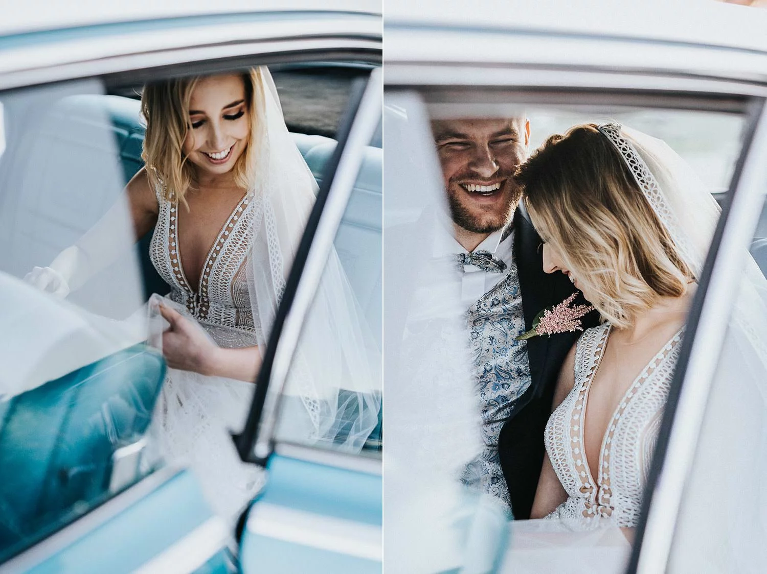 Jako, że rzecz działa się jesienią, wrzosy jako motyw przewodni wesela sprawdziły się doskonale. Nietuzinkowa była też sukienka Klaudii z długim, malowniczo ciągnącym się za nią i trudnym do poskromienia na wietrze welonem. Do tego wisienka na torcie, czyli piękny turkusowy Oldsmobile Delta 88, którym Młodzi pojechali do ślubu.